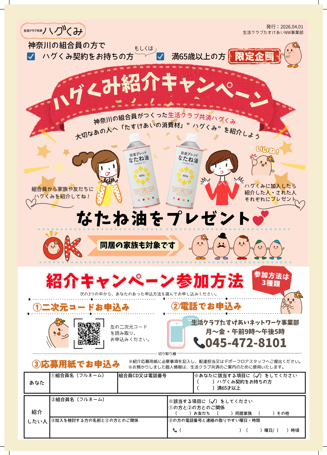 紹介情報をご入力ください https://kanagawa.seikatsuclub.coop/activity/kyosai/shoukai_campaign.html |