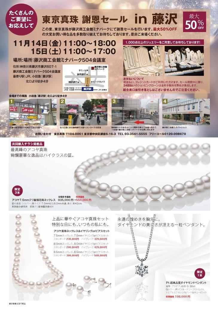 この度、東京真珠が藤沢商工会館ミナパークにて謝恩セールを行います。