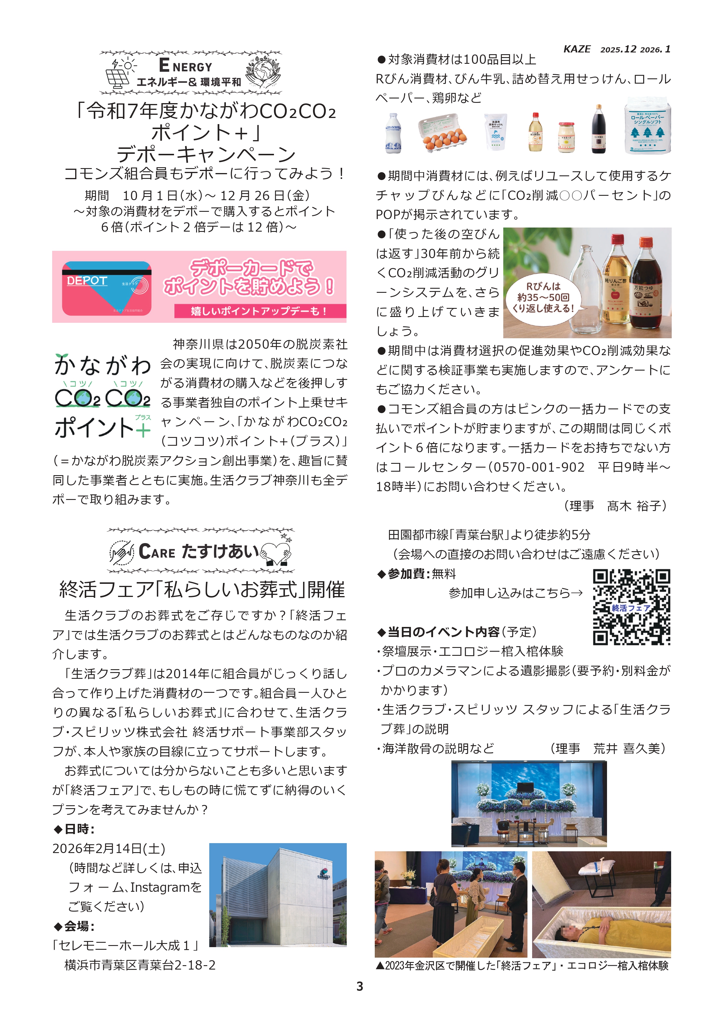 【機関紙】横浜北生活クラブ理事会 広報紙「風」2025年12-2026年1月号