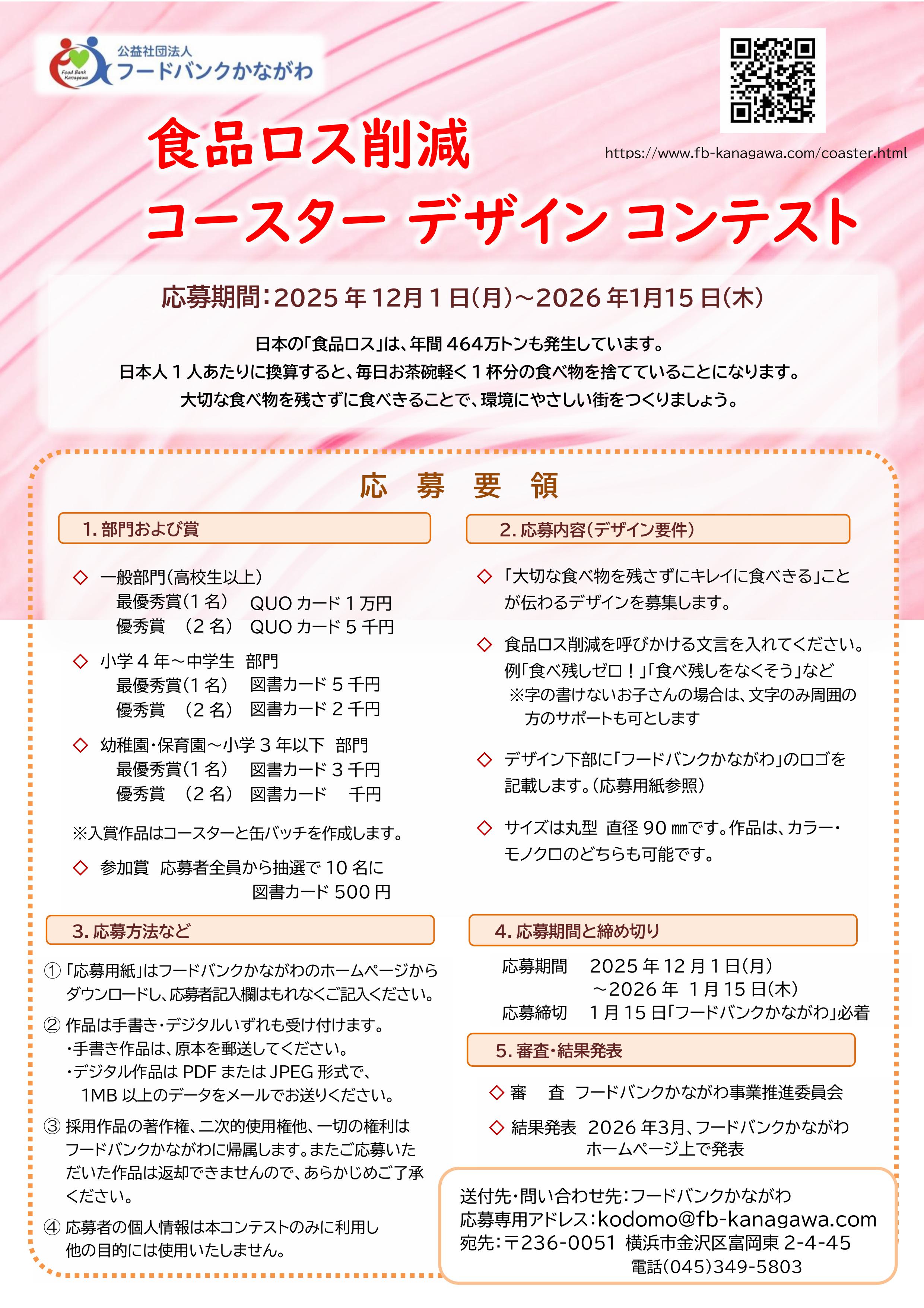 生活クラブでは、フードバンクかながわの「食品ロス削減」への取組みに協賛し、コースターデザインコンテストへのおおぜいの参加を呼びかけます。