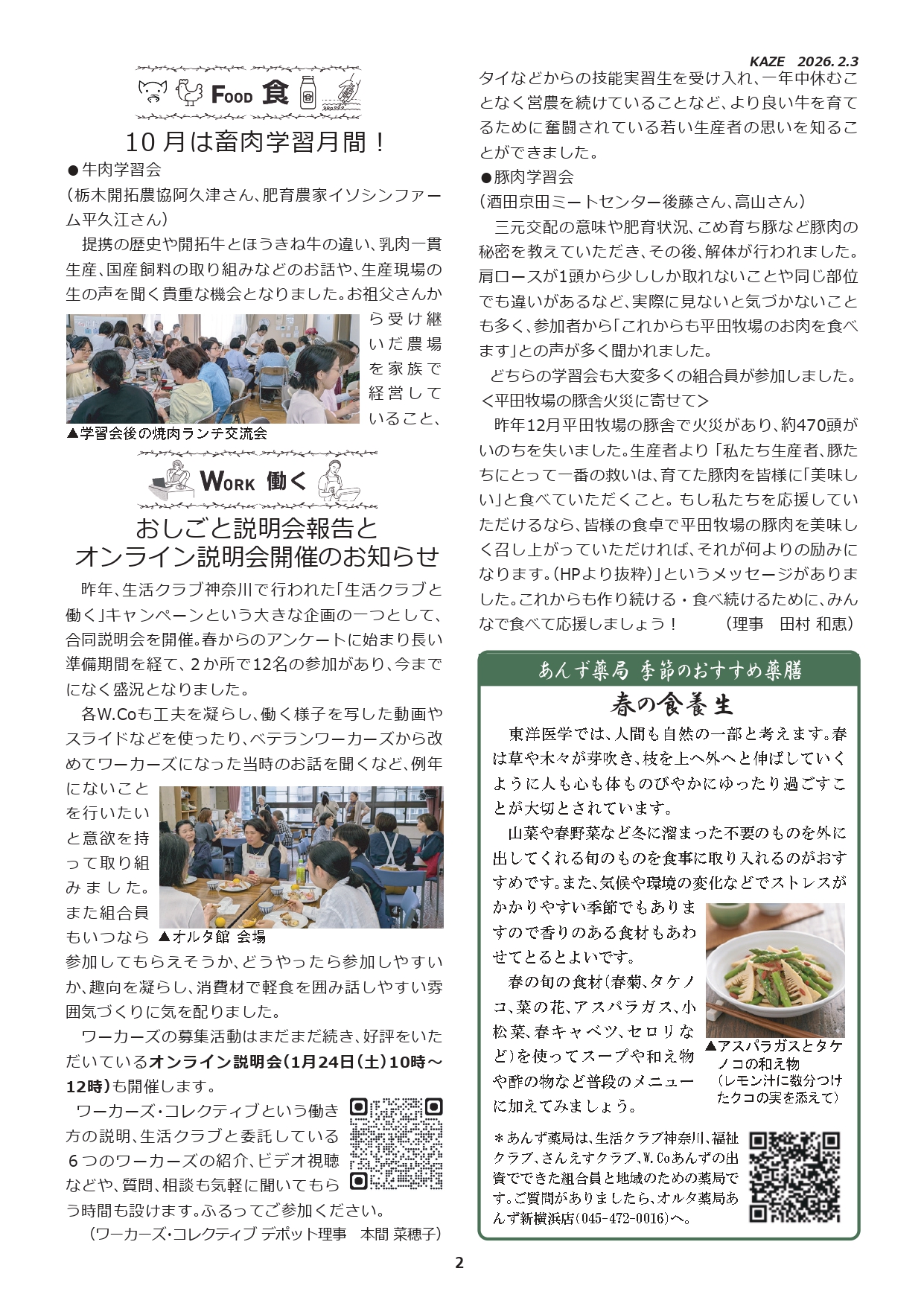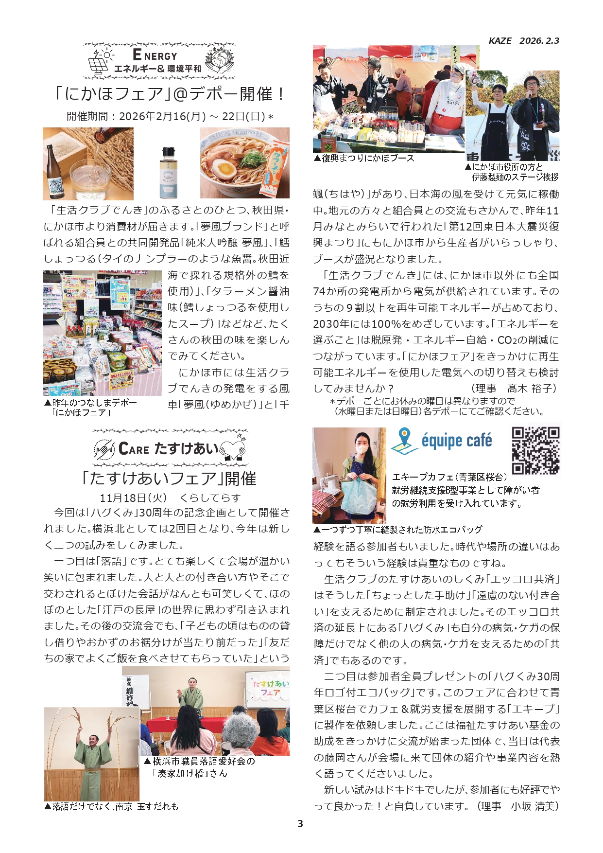 【機関紙】横浜北生活クラブ理事会 広報紙「風」2026年2-3月号