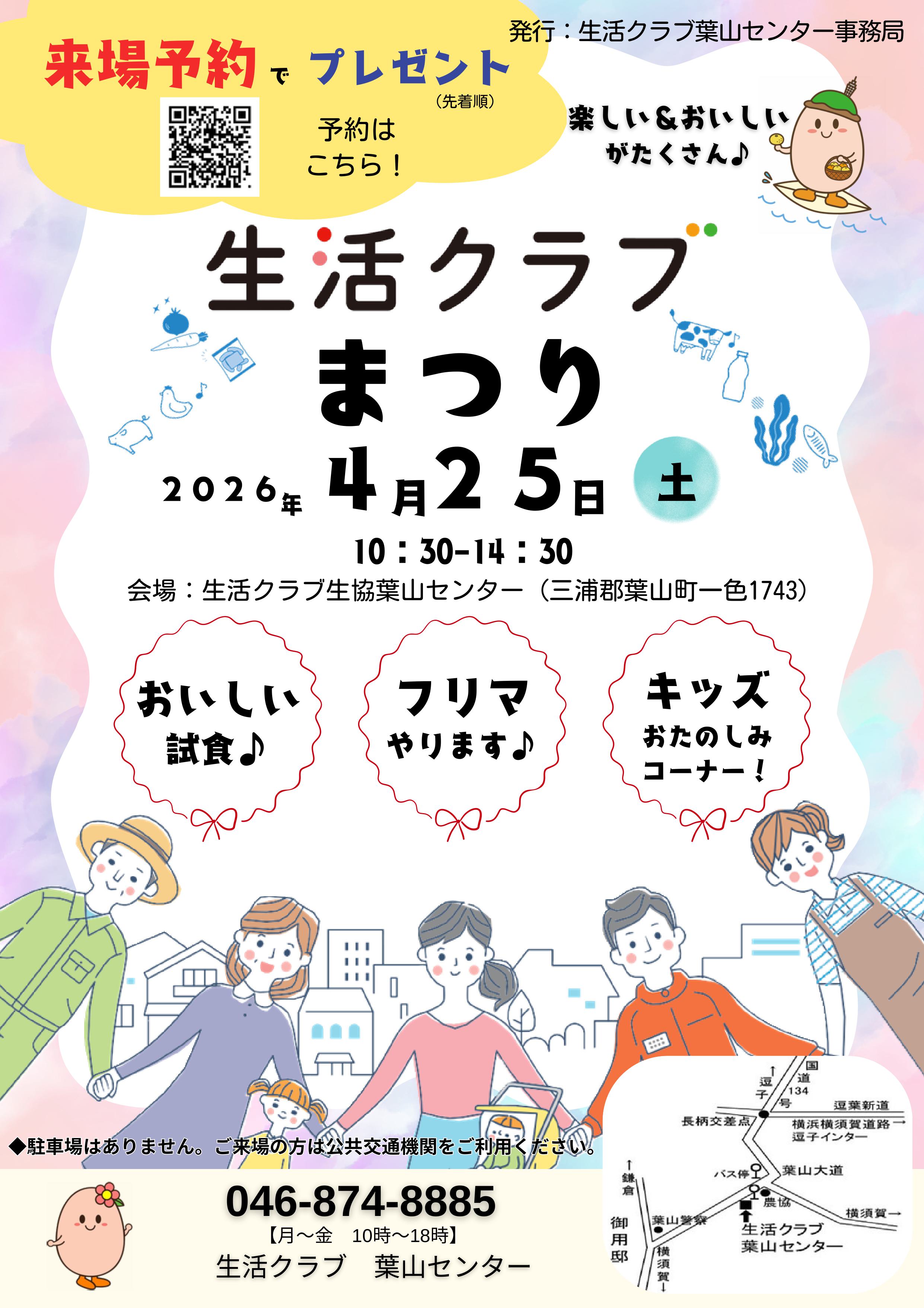 | 問合せ・申込 | WEBでの申込はこちらから 湘南生活クラブ葉山センター TEL:046-874-8885 |