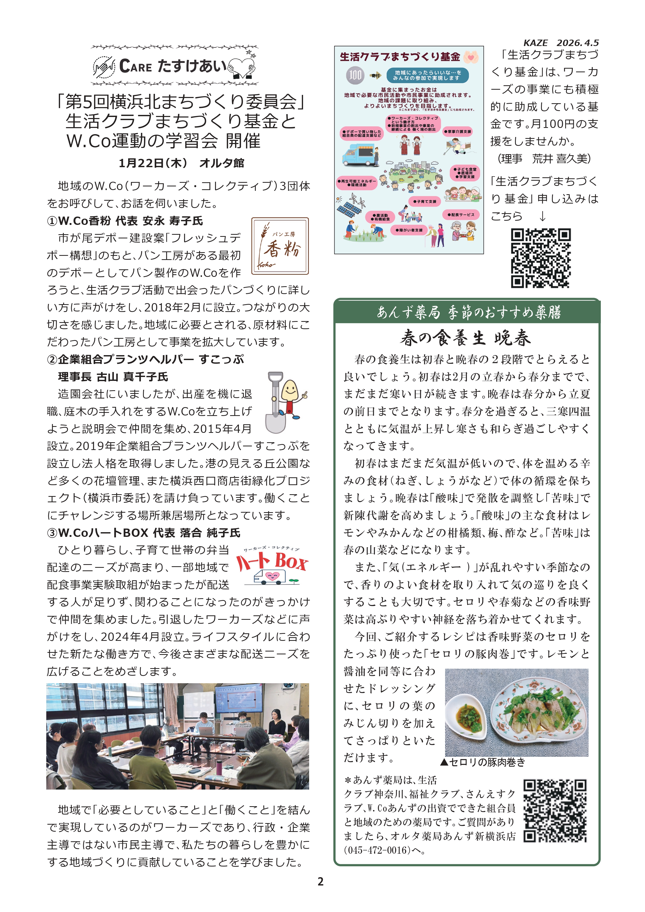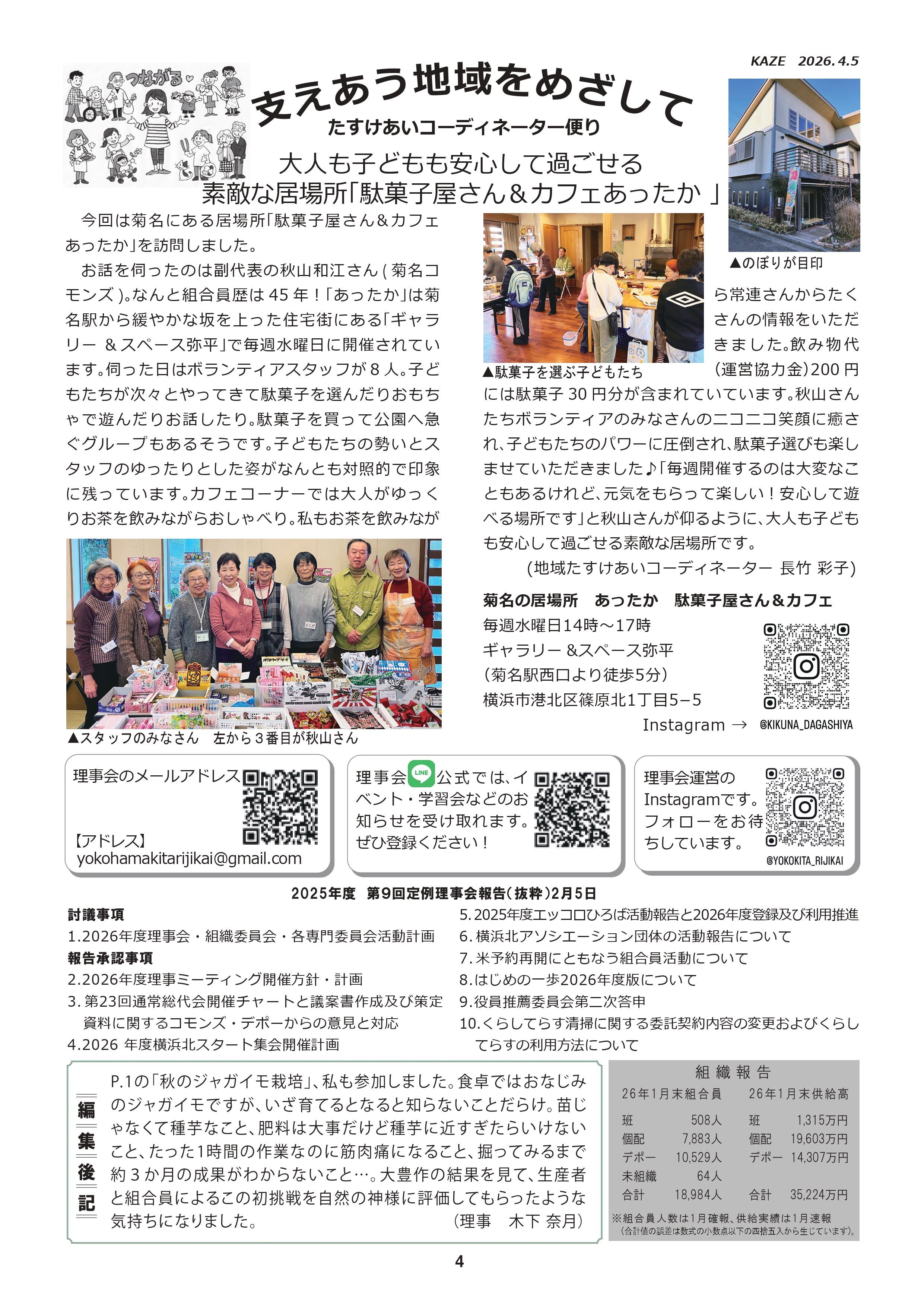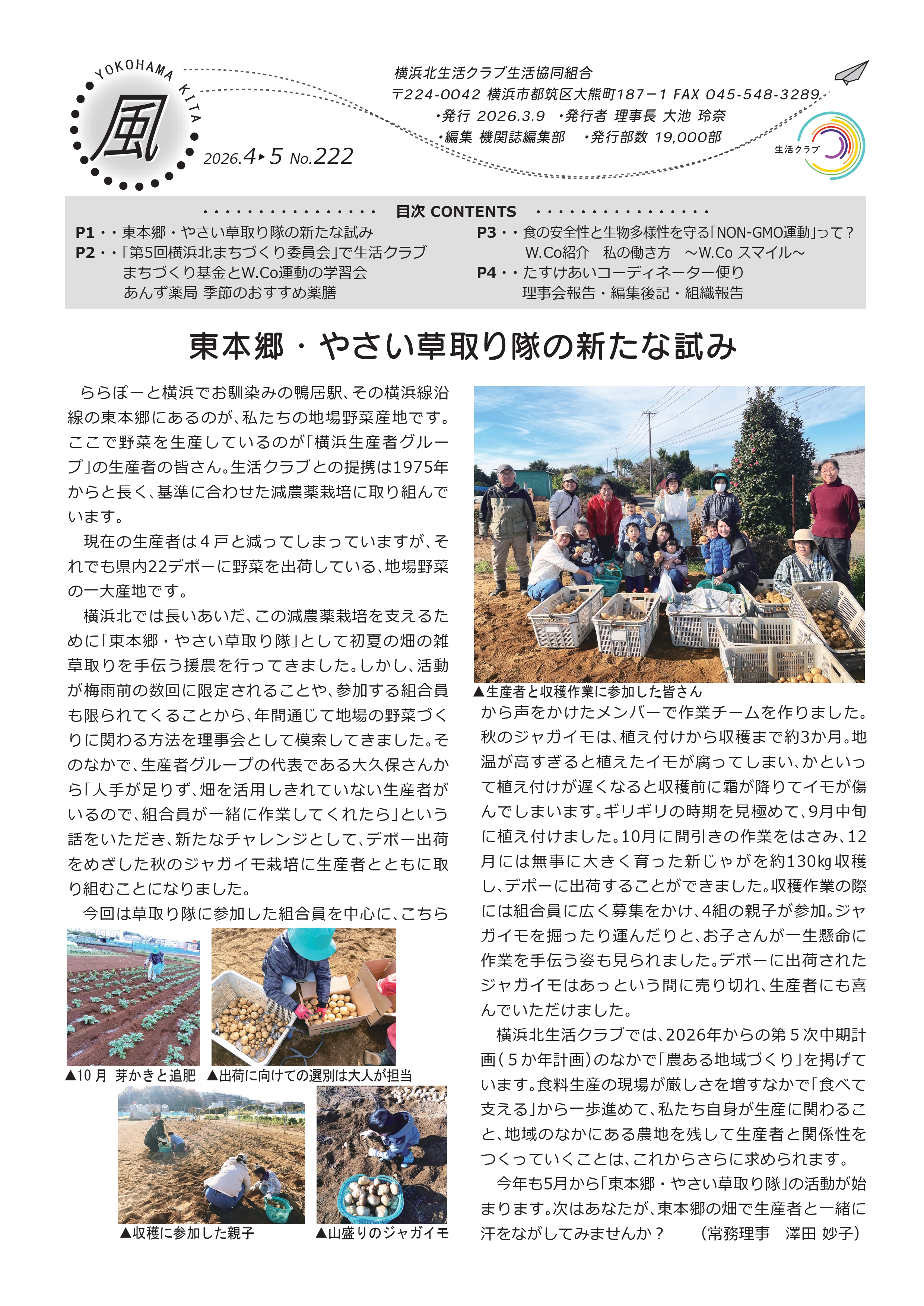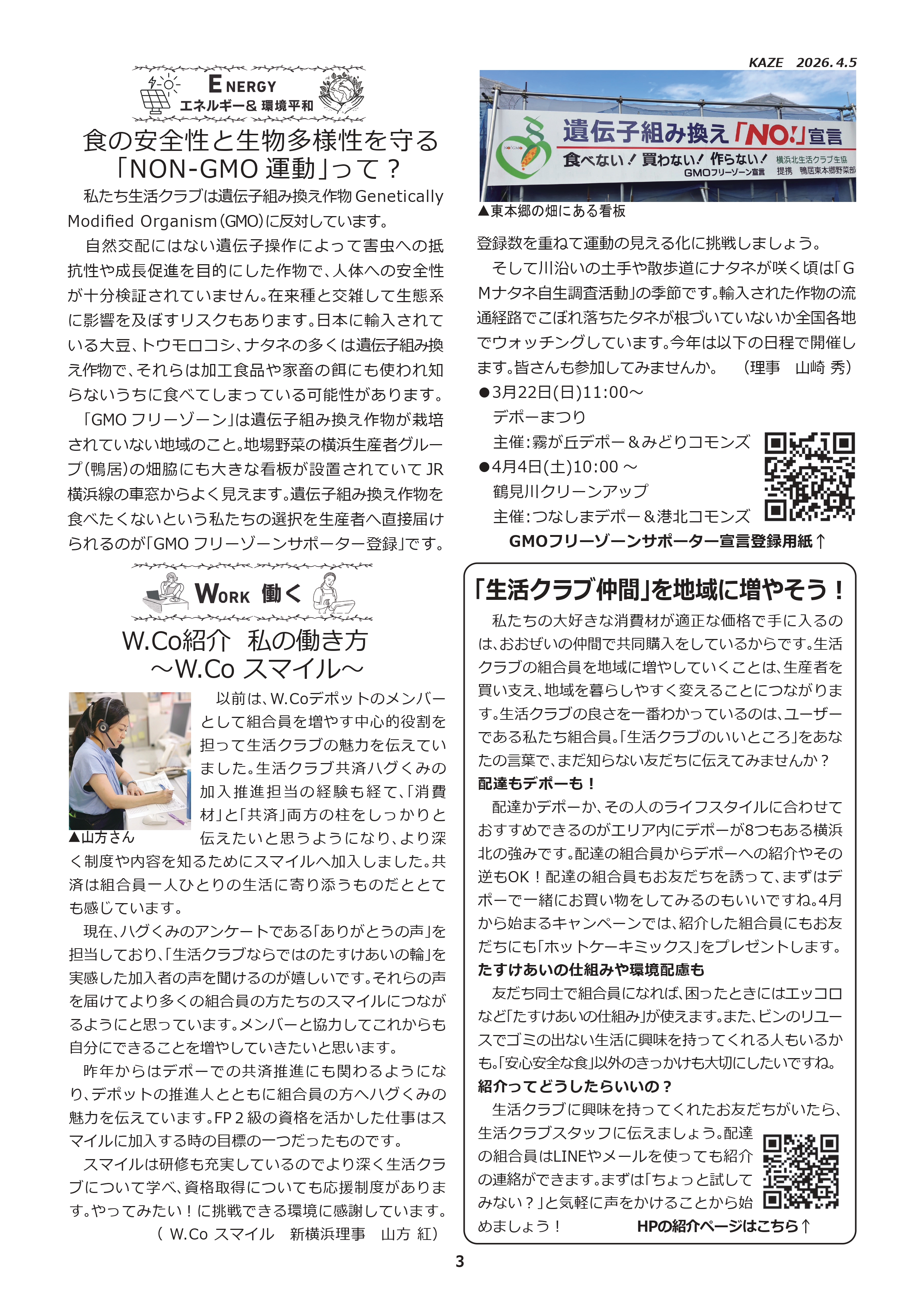 【機関紙】横浜北生活クラブ理事会 広報紙「風」2026年4-5月号