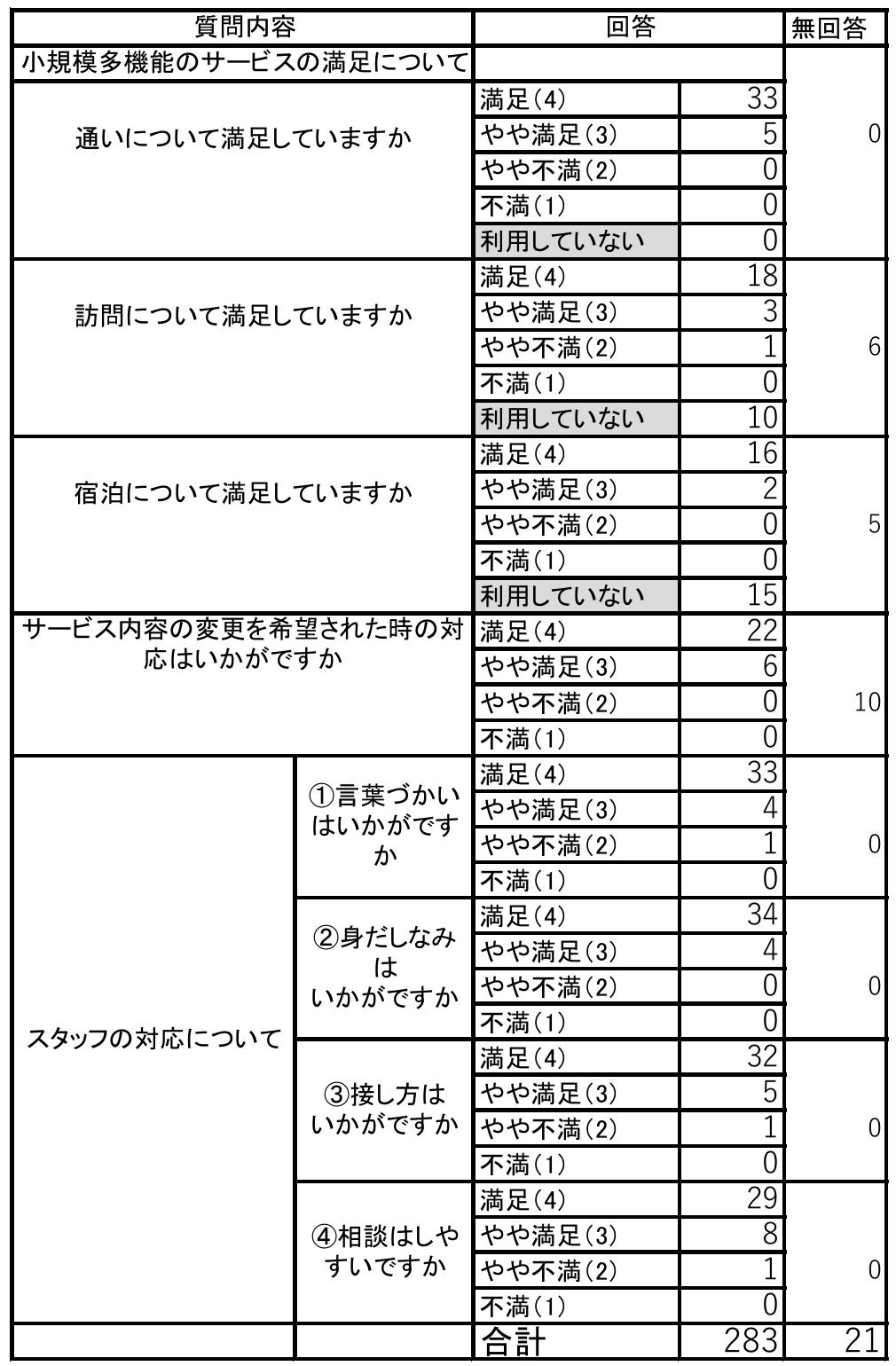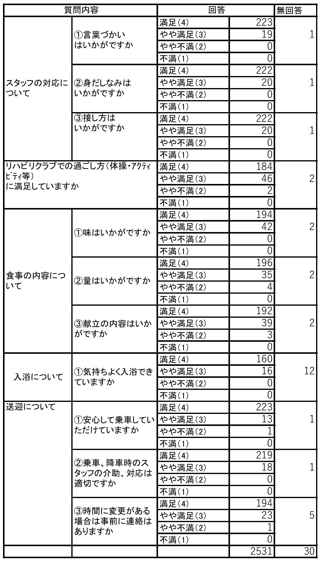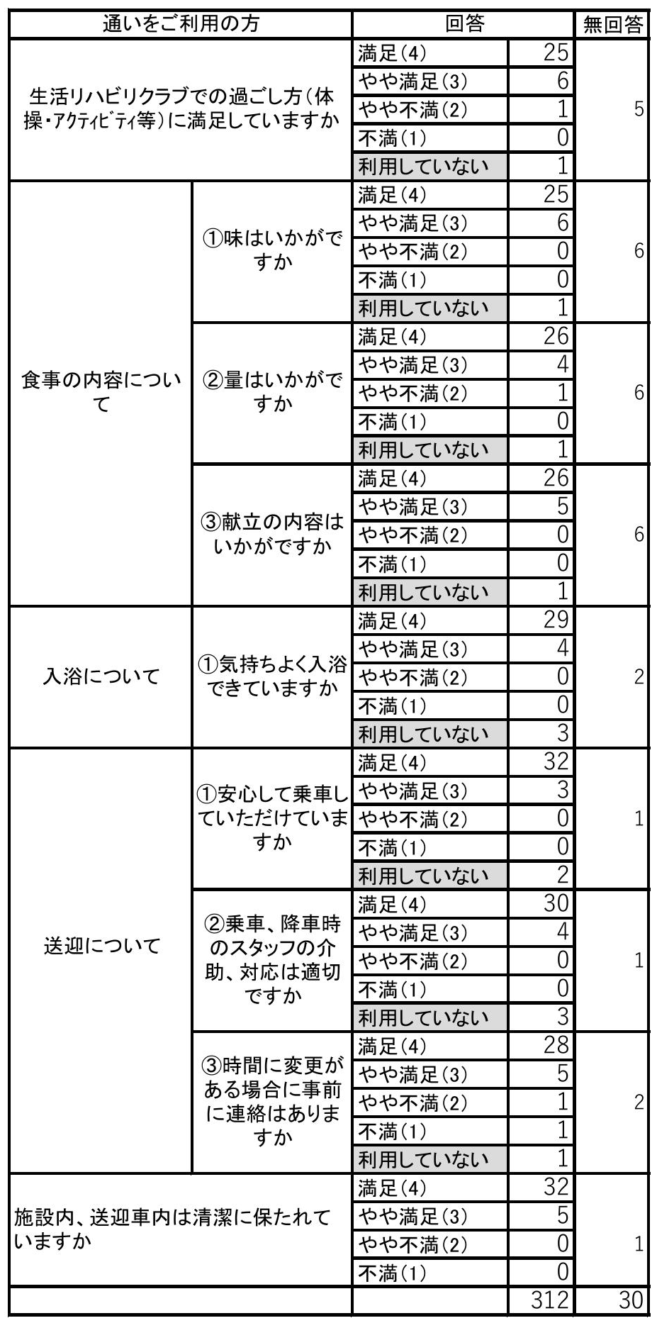 「生活リハビリクラブ」ではより良いサービスを行っていくために、「利用者のサービス満足度アンケート調査」を毎年実施しています。